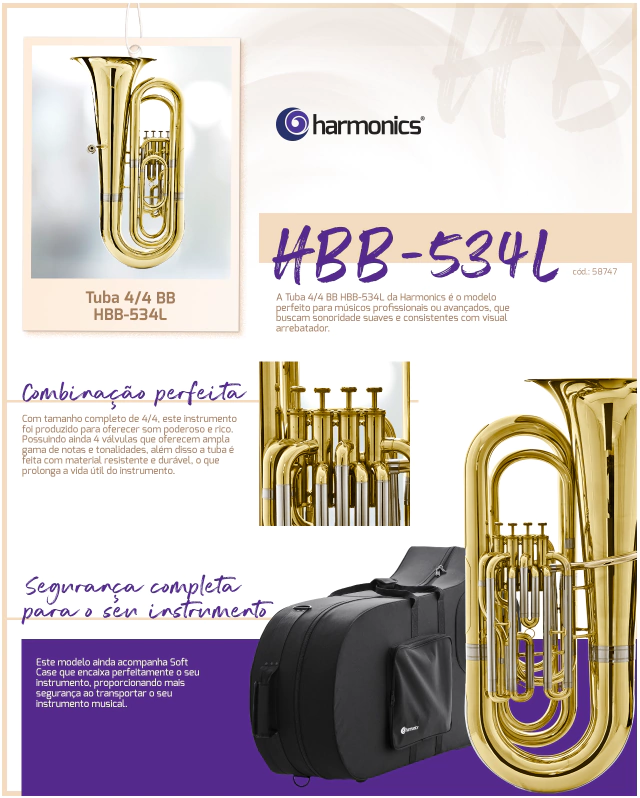 A Tuba Harmonics HBB-534L é a opção ideal para quem busca um instrumento de alta performance e durabilidade sem abrir mão de um preço competitivo.