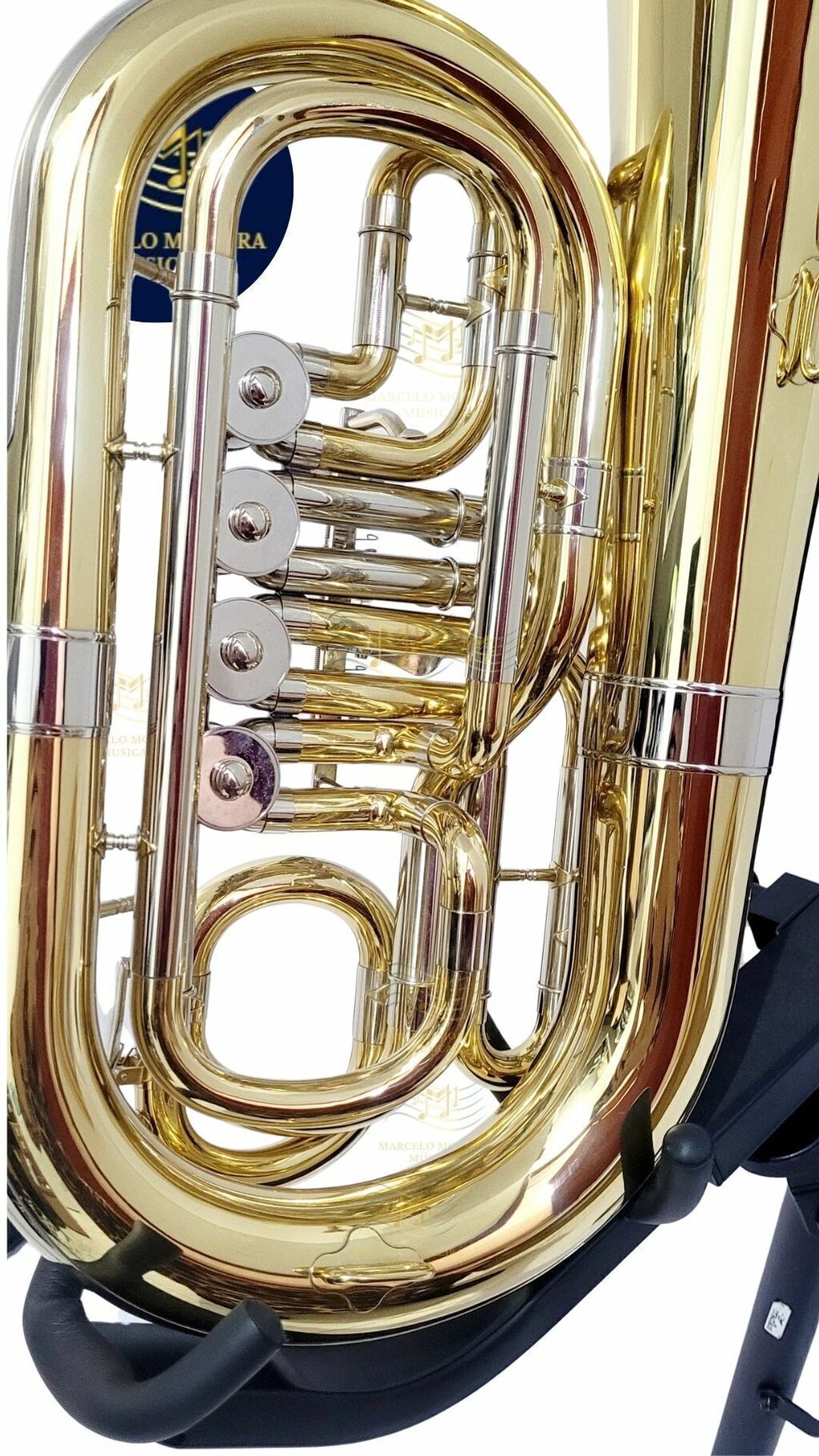 O Euphonium 4 Rotores ou Tuba Junior em Bb Sebastian é a escolha ideal para músicos que procuram um instrumento de qualidade profissional, compacto e com excelente projeção sonora. Perfeito para apresentações em orquestras, bandas e para aqueles que precisam de um instrumento mais leve e fácil de transportar, sem comprometer a qualidade sonora.