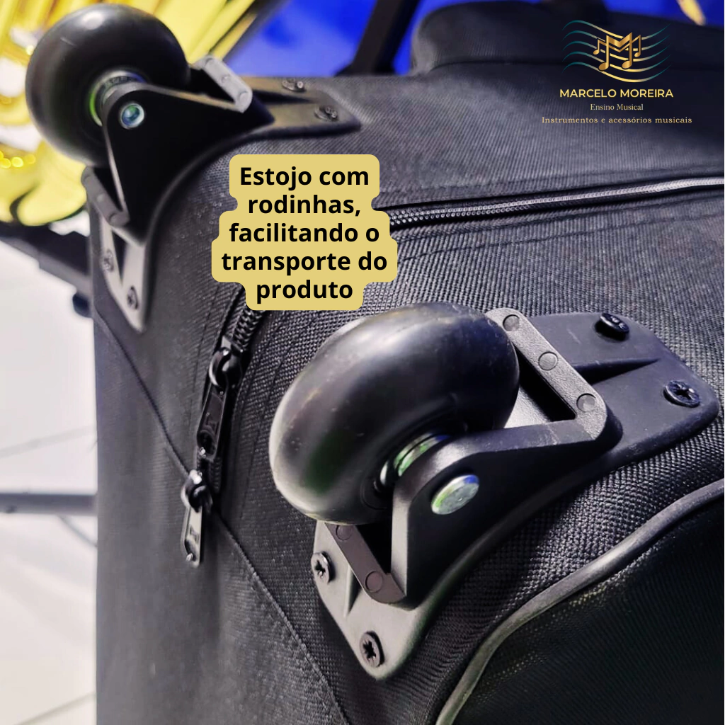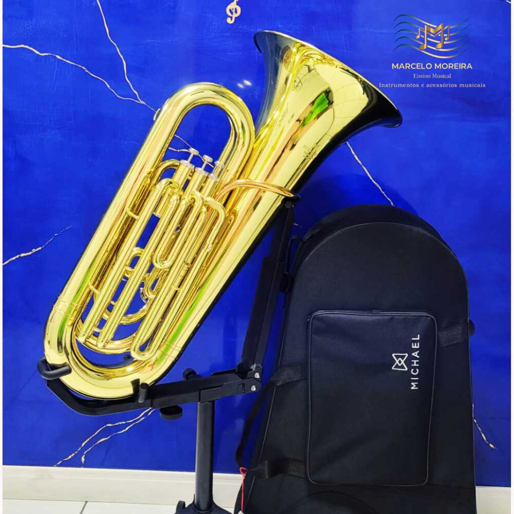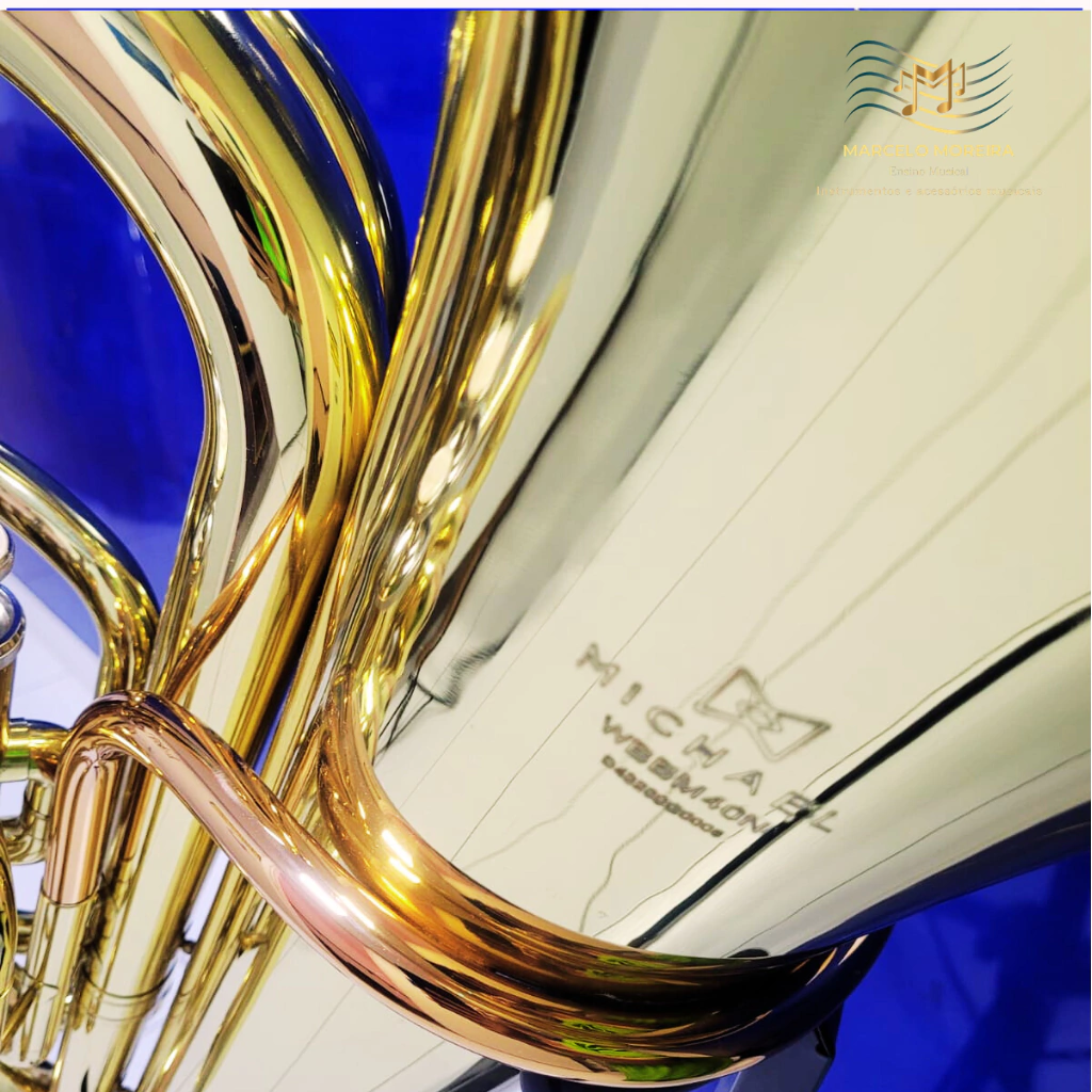 A Tuba Bombardão Michael WBBM40N, de ¾ e 3 pistos, combina alto padrão sonoro e beleza. Compacta, é revestida por um belo acabamento laqueado e oferece excelentes recursos, como as válvulas em aço inoxidável, os botões metálicos, o par de chaves d´água e o tudel fixo. Traz ainda óleo lubrificante, kit de limpeza, bocal Michael e um case de alto padrão. Compre a WBBM40N, um instrumento de personalidade! A WBBM40N vem com acabamento laqueado, com brilho diferenciado, que a deixa ainda mais moderna e refinada. A alta qualidade deste componente garante também ótima proteção ao instrumento, sem prejudicar sua sonoridade Seus botões, além de muito bonitos, são firmes e confiáveis. Vale destacar ainda seus 3 pistos feitos em aço inoxidável, matéria-prima resistente, excelente para garantir uma resposta eficiente na digitação do tubista A tuba bombardão Michael WBBM40N é um modelo compacto, de tamanho ¾, excelente para uma performance confortável. Ergonômica, garante uma tocabilidade mais ajustada ao tubista em qualquer ocasião. A tuba Michael WBBM40N vem acompanhada de bocal Michael, acessório que permite uma embocadura confortável e encaixada. O resultado é uma soprabilidade de qualidade, sempre com muito volume. Oferece case, equipamento resistente e robusto, excelente para praticidade nos deslocamentos. Traz também óleo lubrificante e kit de limpeza para manutenção básica. Esta tuba bombardão da Michael é excelente para quem busca conforto e sonoridade imponente. Sua ótima tocabilidade e grande projeção sonora irão encantar os tubistas mais exigentes em bandas de música e orquestras sinfônicas.